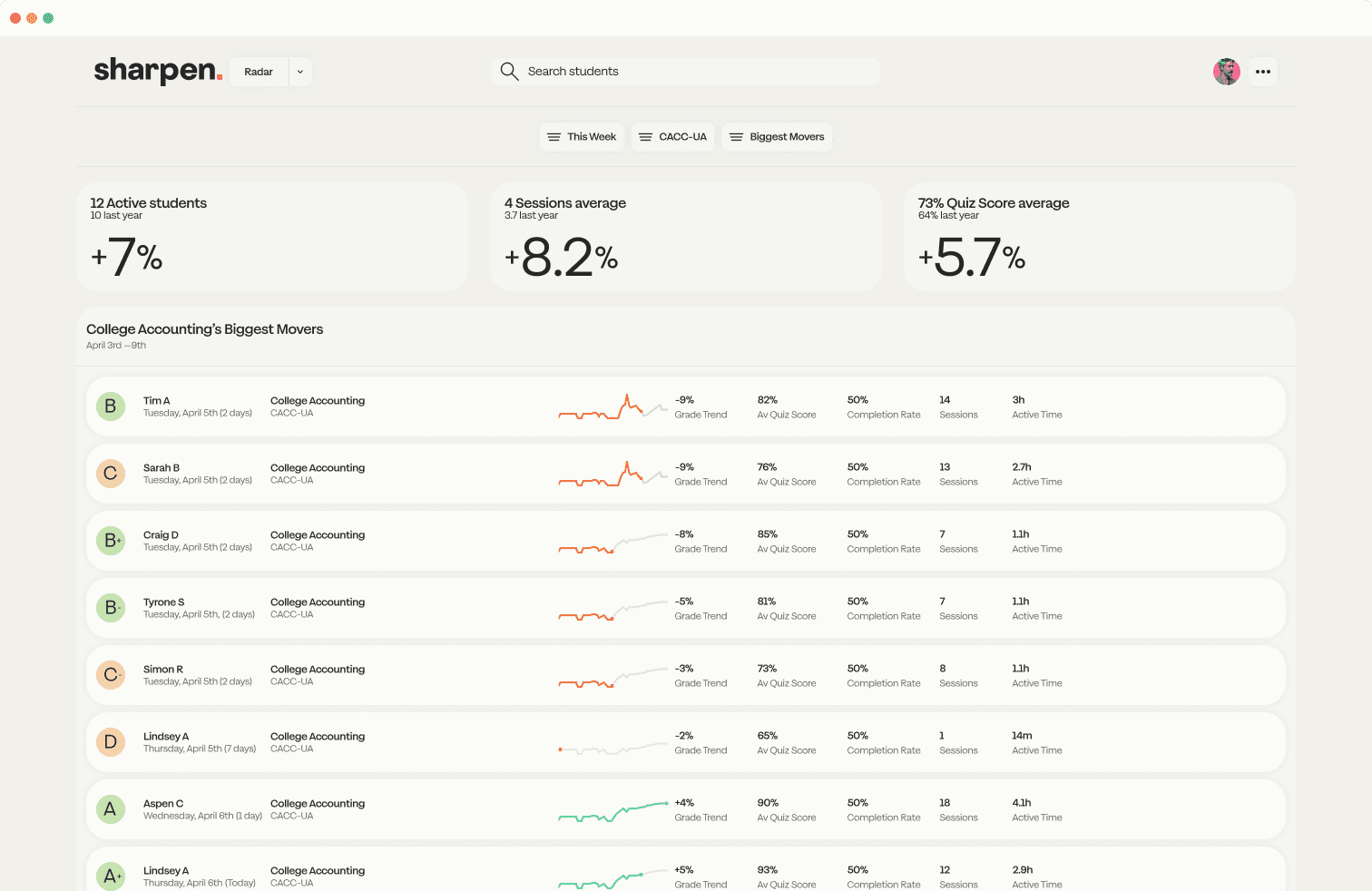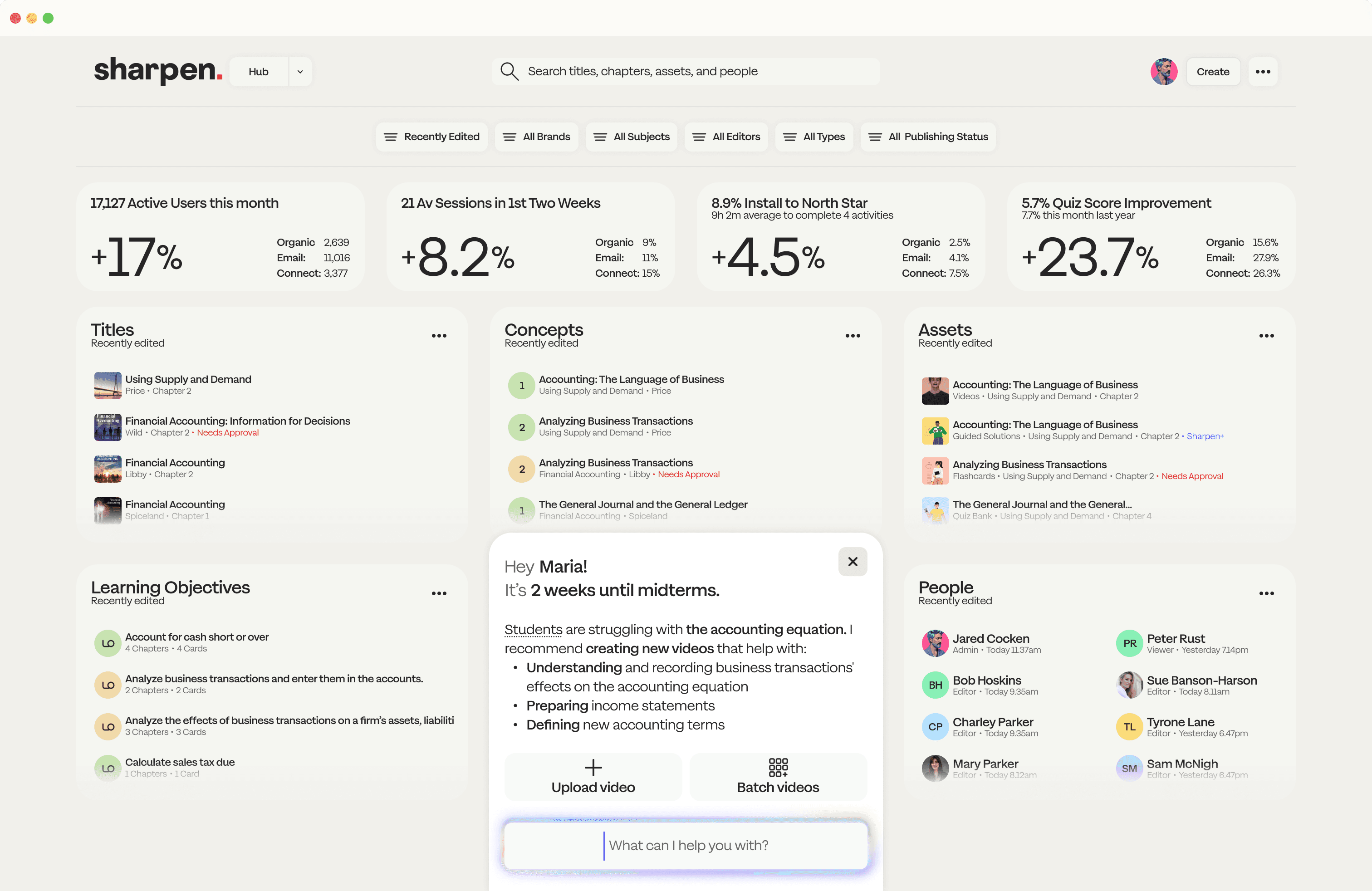 Welcome to Sharpen Advantage—the responsible AI academic success and study app for your institution that scales personalized support, boosts student outcomes, and reduces DFW rates.